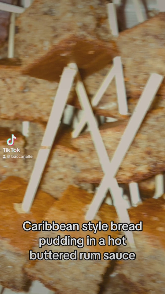 Enjoy our Caribbean inspired bread pudding with elements of coconut, fried fruit and chocolate. Accompanied with our buttered rum sauce.